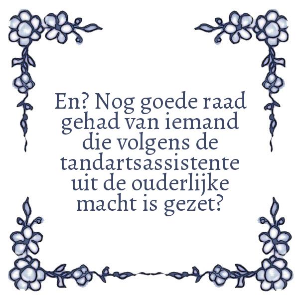 En? Nog goede raad gehad van iemand die volgens de tandartsassistente uit de ouderlijke macht is gezet?