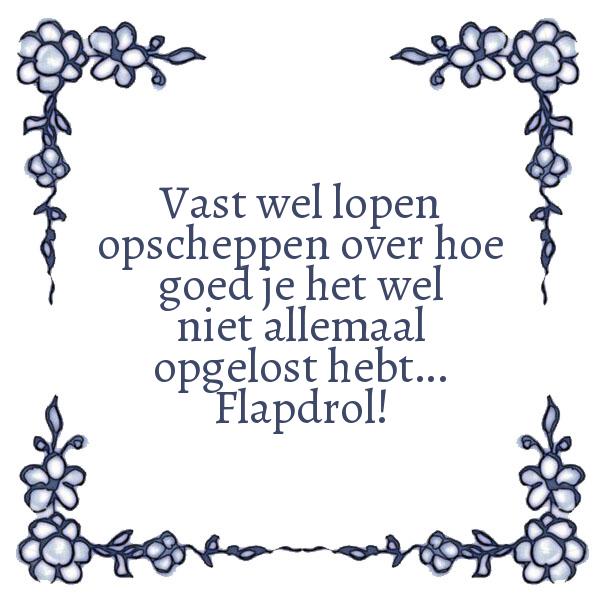 Vast wel lopen opscheppen over hoe goed je het wel niet allemaal opgelost hebt… Flapdrol!